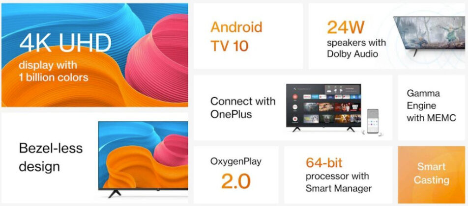 The OnePlus TV 55 Y1S Pro comes with a bezel-less design that makes it look premium. There is support for HDR10+, HDR10, as well as HLF format and ALLM functions. The smart TV runs on Android TV 10.