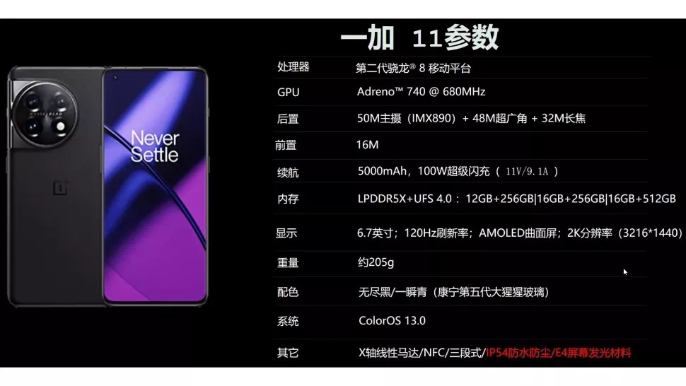 But the real meat to be found in Blass’ tweet is the OnePlus 10 Pro’s spec list. The specs themselves are listed in Chinese, but you can find helpful translations of what’s reportedly coming to the OnePlus 11 all over the web.