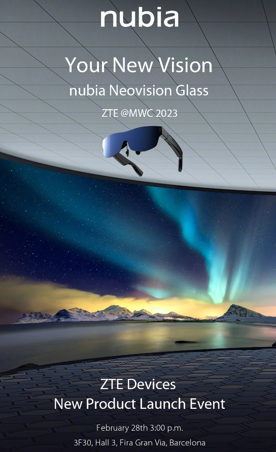 ZTE has announced that nubia’s first AR smart glasses – dubbed nubia Neovision Glass – are coming to Mobile World Congress (MWC) 2023, which starts on February 27 in Barcelona, Spain.
